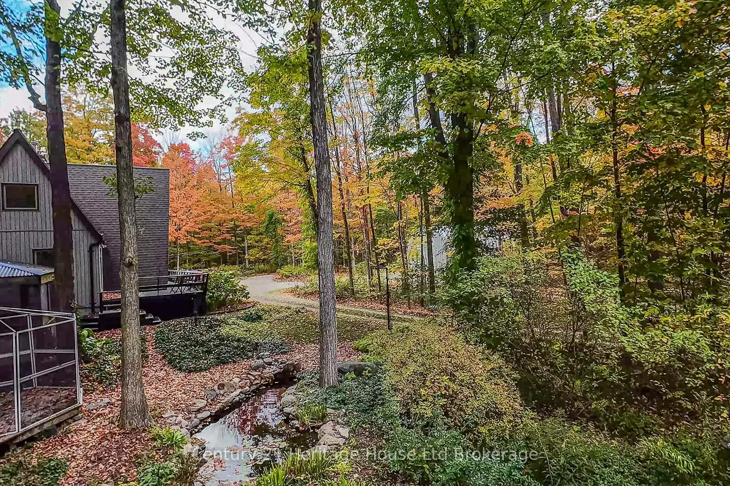 Country roads leading you home. Nestled and tucked away on a wooded 2.7 acres just south of Woodstock in Oxford Centre, this property offers the perfect blend of serenity and style. Along the tree lined winding landway, you'll find two small fish ponds and a spacious campfire area-an idyllic setting for peaceful mornings or evenings spent under the stars.The property features a unique and beautiful detached A-frame home, showcasing a soaring two-story stone fireplace, wraparound decks, and open-concept main floor living. The bright kitchen with the floor to ceiling windows flows nicely into the living area, perfect for entertaining. A separate formal dining room with gleaming hardwood floors also found throughout the main level. The main floor is complemented with an additional office space with direct exterior access making this the perfect spot for those who work from home. An updated bathroom completes the main floor with private views of nature in every direction. Upstairs, the impressive primary retreat includes a second fireplace, a six-piece ensuite, and a walk-in closet along with an additional bedroom . Both rooms feature unique custom architectural roof lines The lower level offers a spacious family room complete with a wet bar, wood burning fireplace, a 3rd bedroom, and a den-ideal for in-law potential-with a walk-up basement leading to the oversized double-car attached garage. Outside, you'll find a large 25' x 40' Quonset building with an RV hookup, a wraparound laneway with ample parking, tons of storage, and unmatched privacy. Don't miss your chance to experience this one-of-a-kind country retreat