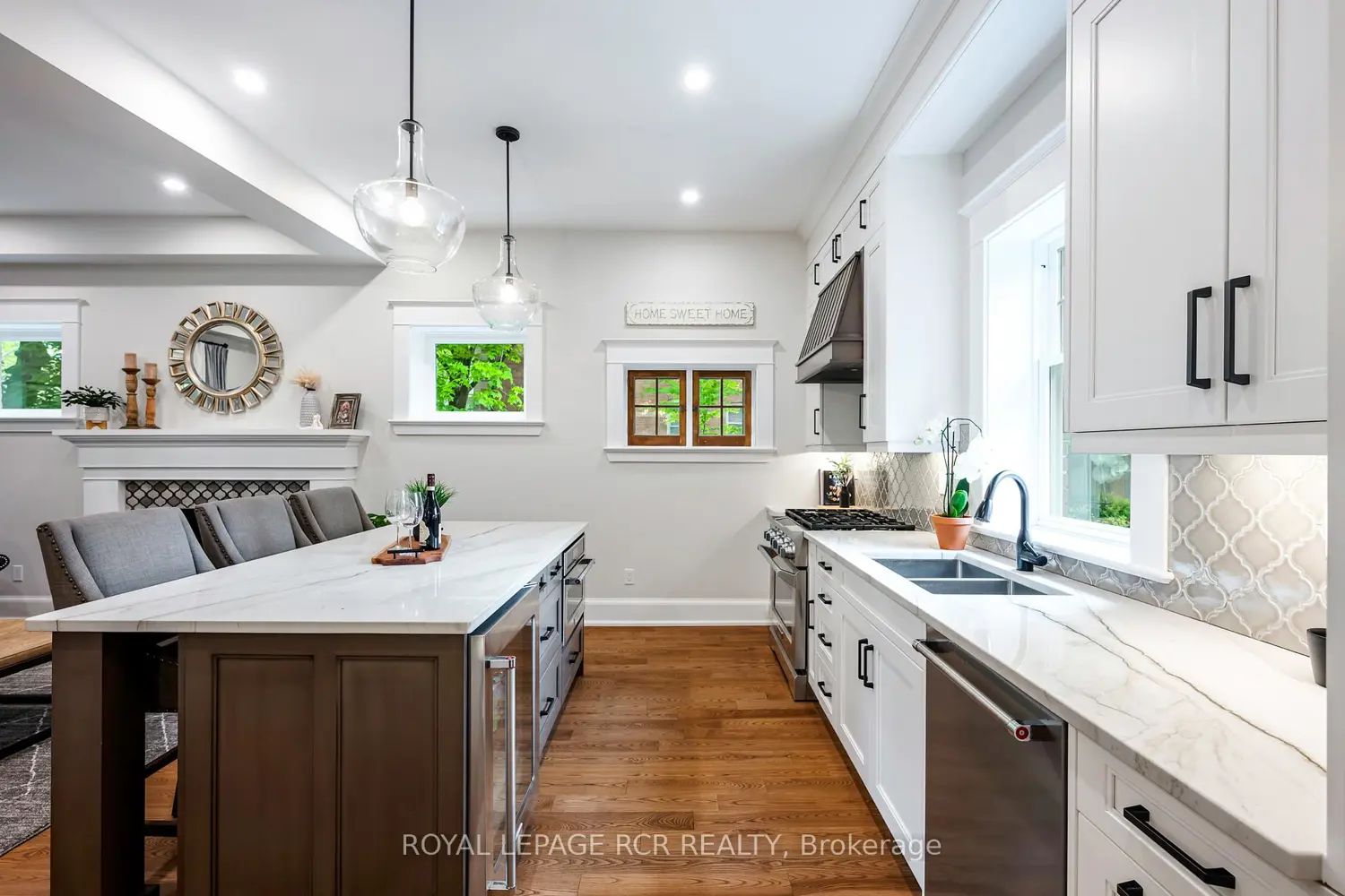Welcome to 56 Mill Street, a luxurious century home in the heart of family-friendly Orangeville. Set on a large 87 ft x 172 ft lot with mature trees, this beautifully restored two & a half story brick home offers timeless charm with modern comforts. Picture it as a new build home, with the exterior of a century home! Just steps from downtown shops, top restaurants, and community events, the location is unbeatable. Originally built in 1907, the home was gutted to the studs and professionally renovated in 2019 with all-new framing, spray foam insulation, windows, electrical, plumbing, HVAC, furnace, AC, and ductwork; no expenses were spared. Inside, enjoy soaring 10 ft ceilings, exquisite custom millwork, custom maple kitchen cabinetry, quartzite countertops, top of the line stainless steel KitchenAid appliances, a built-in wine cooler, and rich ash hardwood floors. The living room offers a cozy retreat with a gas fireplace, while the dining room showcases an exposed brick wall that adds warmth and heritage charm. The family room offers soaring 13.5 ft ceilings and opens to a stunning backyard with a stone patio, lush gardens, and a gazebo that creates a peaceful oasis at home. The primary suite is a luxurious escape that includes a spa-like 4-piece ensuite with heated floors and quartz countertops as well as a custom closet. Three additional sizable bedrooms offer comfort and versatility for children, guests or a home office; with built in closets and views of the pristine property. A detached, heated, and insulated garage with epoxy floors adds function and flexibility. 56 Mill Street is the perfect blend of historical elegance and high-end modern living, located in one of Orangeville's most desirable neighborhoods. With every detail thoughtfully updated and designed, this home offers unmatched quality, space, and convenience for the discerning buyer looking to enjoy the best of what this vibrant community has to offer.