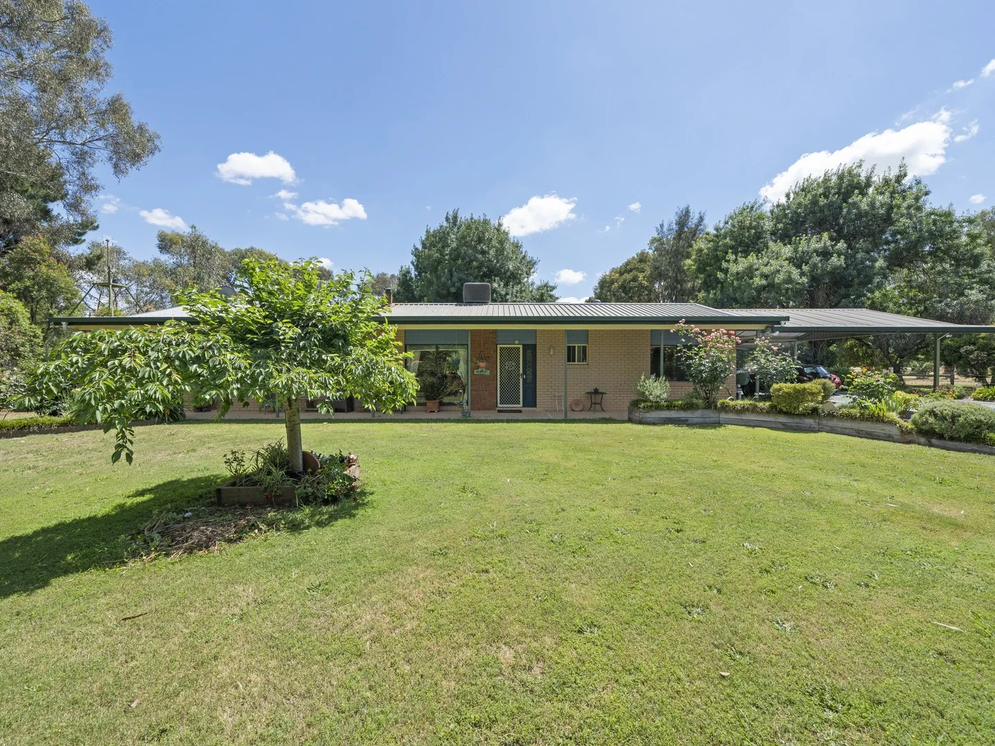 Description: Set on approximately 5 acres of serene countryside, this stunning 3 bedroom, 2 bathroom brick home offers the perfect balance of space, comfort, and rural charm, all within easy reach of Benalla. Step inside to discover a welcoming open plan living, kitchen and dining area, filled with natural light and beautiful views of the surrounding property. The living room features a fireplace, creating the perfect space to relax and unwind during the cooler months. The kitchen is well appointed with a dishwasher, gas cooktop, oven, and ample storage, ideal for family living and entertaining. The master suite is a true retreat, complete with a private sitting area, walk-in robe, and ensuite featuring a double vanity, shower, and separate toilet. The remaining two bedrooms each include built-in robes and are serviced by the main bathroom with shower, vanity, and toilet. A spacious laundry with direct outdoor access adds convenience and could easily double as a study or children's activity space. Entertain year round under the large undercover alfresco area, overlooking the beautifully maintained gardens and expansive yard. Comfort is guaranteed with wood heating, a split system, and evaporative cooling, along with 5kW solar panels for energy efficiency. The property is also well equipped with a 100,000L water tank and an additional 50,000L tank dedicated to garden use. Outside, you'll find a great sized shed, ideal for storage or hobbies, and plenty of space for families, pets, or those seeking a peaceful country lifestyle.