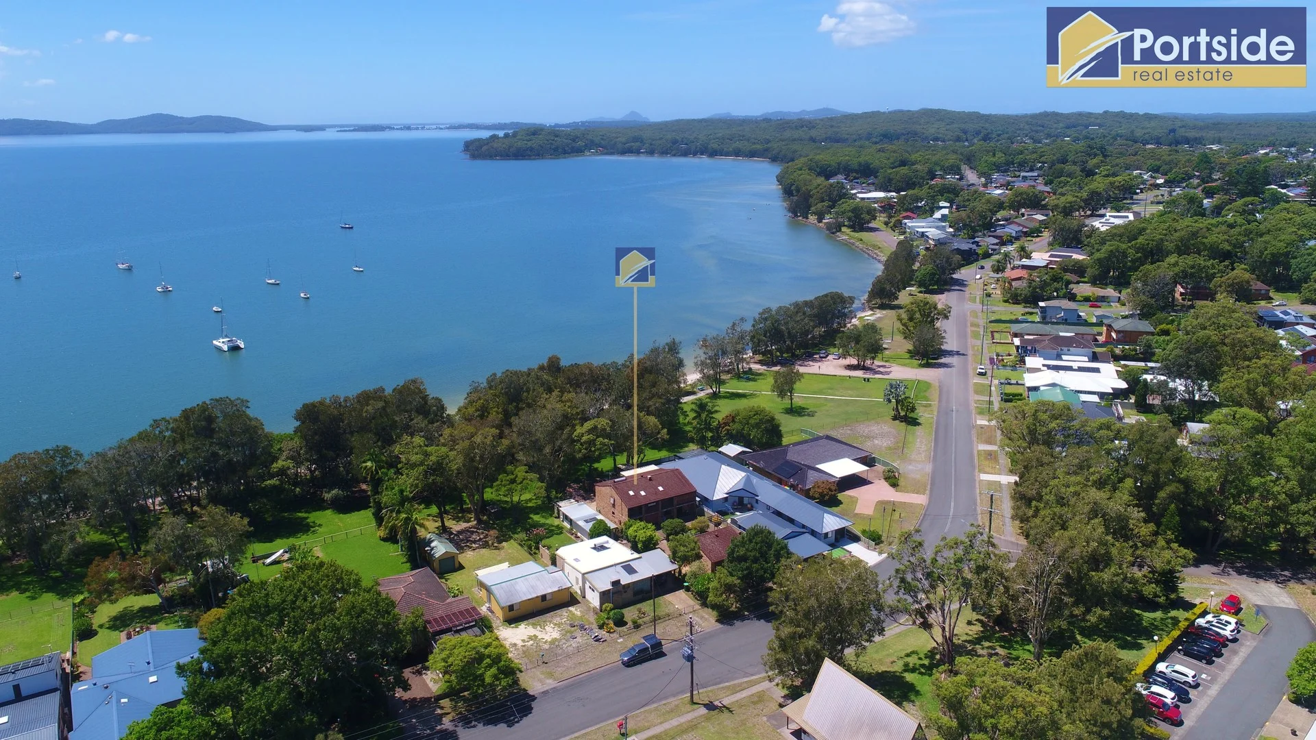 Description: Fantastic waterfront reserve location looking North east over Port Stephens towards North Arm and Fame cove and situated only 30 metres from the sand on picturesque Tanilba Bay. This imposing, solid cavity brick home is situated towards the back of the spacious level block to maximise the location, almost close enough to hit the water with a fishing line from the back verandah on a high tide. The home is an incredibly versatile layout currently configured as two residences, separately metered for electricity and separated via a suspended slab, ensuring maximum privacy and sound insulation. The upstairs residence consists of a large living space overlooking the water and flowing out to a lovely entertainment deck looking north east over the bay, perfect for capturing those late afternoon ocean breezes or making the most of the winter sun. Both the master bedroom and upstairs guest bedroom share this same aspect; the master is complemented by a walk-in robe and ensuite, whilst the generous guest bedroom includes a built-in wardrobe. A library/study, full-size kitchen and separate dining space complete the upstairs accommodation. Downstairs consists of a large living space overlooking the water, 2 good-sized bedrooms, a full-size kitchen and a bathroom. The main entry links both residences plus provides access to the large laundry and the third "beach bathroom". To utilise the property as a large, spacious 4-bedroom 3-bathroom home, it is a simple matter of not locking some doors off the main entry. The property also provides for a huge amount of secure off-street parking featuring 2 driveways separated by a secure lock-up garage, ensuring plenty of parking for every towable toy imaginable or to simply accommodate plenty of holiday makers or extended family visiting over peak periods when locations like this are almost impossible to secure. This Property has not been offered to the market in over 40 years and represents a rare opportunity to secure a premier location on one of the East Coast's best waterways. Don't miss this increasingly rare opportunity! Disclaimer: Whilst Portside Real Estate takes great care in obtaining information from sources, we believe to be reliable - in the preparation of this advertisement and information contained herein. Portside Real Estate cannot however warrant, represent or guarantee the accuracy, or completeness of the information and therefore, cannot accept liability resulting from reliance on this information. Portside Real Estate strongly recommends potential purchasers make their own independent inquiries and investigations before purchasing.