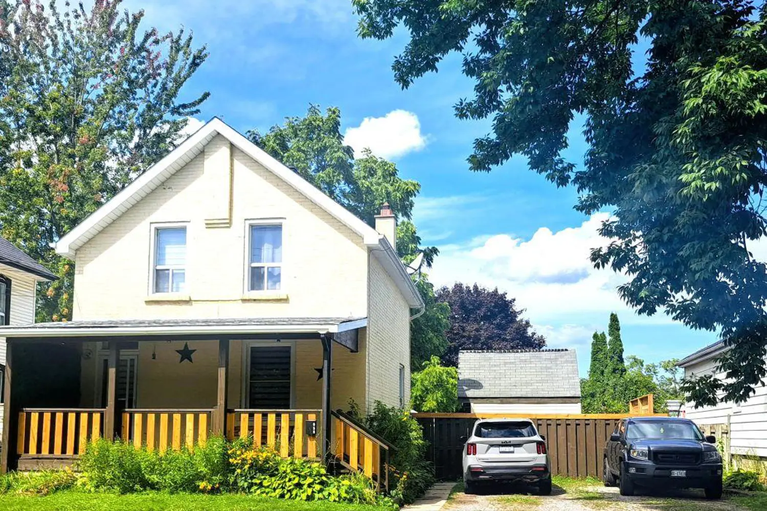 An Absolute Stunning Newly Renovated Century Home on an Extra Wide Lot. Private Treed Backyard, Covered 20 ft Front Porch,Quiet Side Street, Parking for 4 Large Vehicles. Amazing New Modern Kitchen with Quartz Countertops, Samsung Appliances, Kitchen Island, Soft close Drawers, Cedar Plank Ceiling with Pot Lights on Dimmer. A Bespoke Coffee Station, Stone Backsplash, 2 Windows Providing lots of Sunlight Perfect for Entertaining. Oak Laminate Flooring on Main, with Original Floors on Stairs, 2nd Level and Powder room. 2 Laundry Stations, One On Lower Level and One Next to Bedrooms for Easy Convenience. Lots of Original Features Kept like, Front door with knocker,9 inch Baseboards, Tall Ceilings on main, Brick in The Kitchen. A 10x10Ft insulated He/She shed next to the home that is currently being used as a gym. A Utility Shed towards the Back or the property for all your storage needs.Excellent Location with Shopping on Lansdowne, Small park on the corner and Jackson Park just a short drive. Home shows amazing and every updated Feature is done to the Highest Standards. A true Gem!