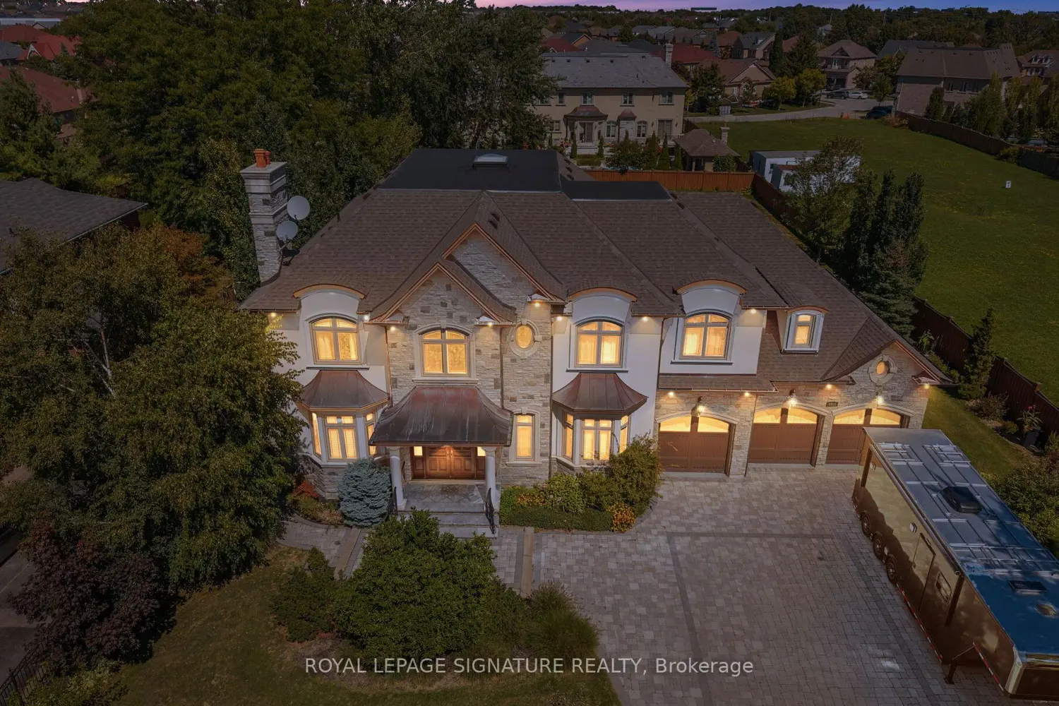 An extraordinary elegant 2-storey custom residence offering over 7,000 sq. ft. of impeccably finished living space plus a fully developed lower level. Nestled in a prestigious neighborhood surrounded by other Estate homes, this home has been thoughtfully designed to combine timeless architecture with modern sophistication, highlighted by superb craftsmanship, soaring ceiling heights and luxurious details throughout. From the moment you arrive, the exterior sets the tone with its striking stone and stucco façade, copper roof accents, expansive windows, and an elegant double-door entrance. Step inside to a dramatic foyer with sweeping staircases and sightlines that draw you into spacious, light-filled principal rooms. The open-concept main floor showcases custom millwork, rich hardwood flooring, and oversized windows, creating a seamless flow ideal for both grand entertaining & everyday living. The gourmet chefs kitchen is a true centerpiece, featuring custom cabinetry, granite countertops, professional-grade built-in appliances, and a generous island w/ seating. A butlers pantry connects directly to the formal dining room, while the adjoining family room offers a custom fireplace and wall-to-wall windows overlooking the private rear yard and patio. Upstairs, four well-appointed bedrooms each enjoy walk-in closets and ensuite access. The primary suite is a luxurious retreat with a spa-like bath, complete with a freestanding tub, oversized glass shower, dual vanities, and custom dressing room. A convenient second-level laundry adds to the homes thoughtful design. The lower level extends the living space with radiant heated floors, a recreation area, fitness zone, custom wine cellar, soundproofed theatre room, additional bedrooms, and direct walkout access to the backyard. Designed with both comfort and elegance in mind, this home truly offers the ultimate lifestyle. A Custom tailored triple garage w/ 2 tandem spaces & dual hoists, perfect for car enthusiasts!