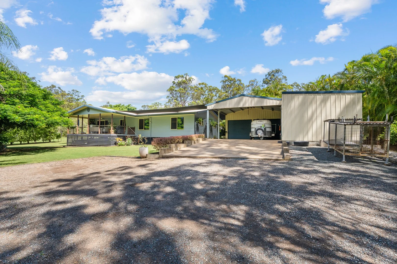 Description: Immaculately presented and set on a private 2 acre allotment, this beautifully maintained home offers a peaceful lifestyle with nothing to do but move in and enjoy. With plenty of space for a pool, family living, and pets, this property delivers the perfect balance of comfort, convenience, and tranquillity. • Spacious master bedroom featuring a walk in robe and stylishly renovated ensuite • Three generously sized bedrooms with built-in robes (one with air conditioning) • Modern, renovated family bathroom • Well appointed kitchen with ample storage and generous bench space • New flooring throughout • Practical combined study and laundry space • Ceiling fans throughout for year round comfort • Open plan living and dining area with air conditioning • Beautiful private front deck, perfect for relaxing or entertaining • Covered rear outdoor area, ideal for unwinding or quiet retreat • Immaculate, private gardens and manicured lawns • Double shed with carport and additional storage space • Fully fenced 8,112m² allotment offering space and privacy • Charming pond positioned at the front of the property • Bore water supply for added convenience Ideally located just minutes to town and only a short drive to Tinana Primary School, local shops, and Maryborough's shopping centres and CBD, this property combines rural charm with everyday convenience. This is a fantastic opportunity to secure a small acreage lifestyle property close to everything-don't miss your chance to inspect this impressive home.