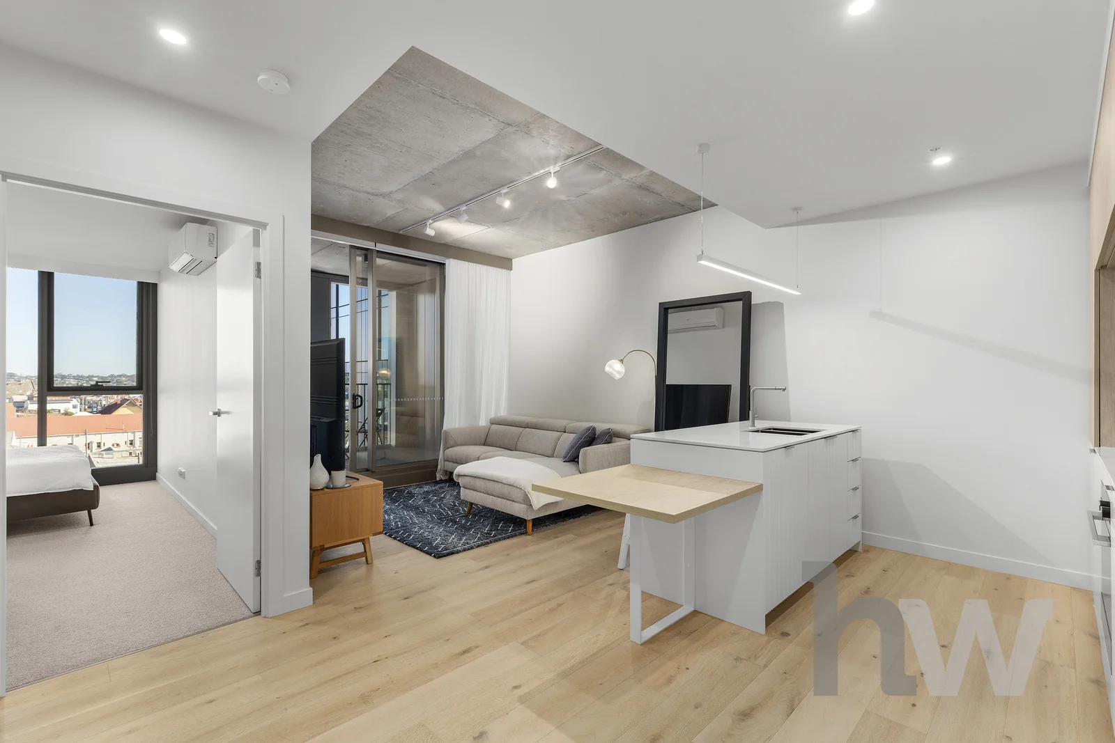Description: Just a 5-minute stroll to Geelong Train Station, the bustling city shopping precinct, and across the road from the Geelong Arts Centre, this beautifully appointed, 7th-floor apartment offers the perfect blend of comfort, convenience and lifestyle. Step inside and be welcomed by a light-filled open plan kitchen, dining, and lounge area perfect for relaxed living and entertaining. The modern kitchen is a standout, featuring a Caesarstone-style island bench with elegant waterfall sides, a concealed built-in fridge and dishwasher, gas cooktop, and electric oven. The spacious bedroom includes a generous built-in robe, while the sleek bathroom boasts an oversized edge-less shower and modern vanity. With two split system air-conditioners, you'll enjoy year-round climate control, and the expansive views to the west of the city offering daily inspiration. Additional features include: - Secure single car space with storage unit - Elevator access - Well-maintained building in a sought-after location The current owner reflects, "I've truly loved living here it's the perfect blend of comfort, convenience and easy living." Whether you're a first home buyer, downsizer, or investor this apartment is an exceptional opportunity not to be missed. Contact us today to arrange a viewing! *All information about the property has been provided to Hayeswinckle by third parties. Hayeswinckle has not verified the information and does not warrant its accuracy or completeness. Parties should make and rely on their own enquiries in relation to this property.