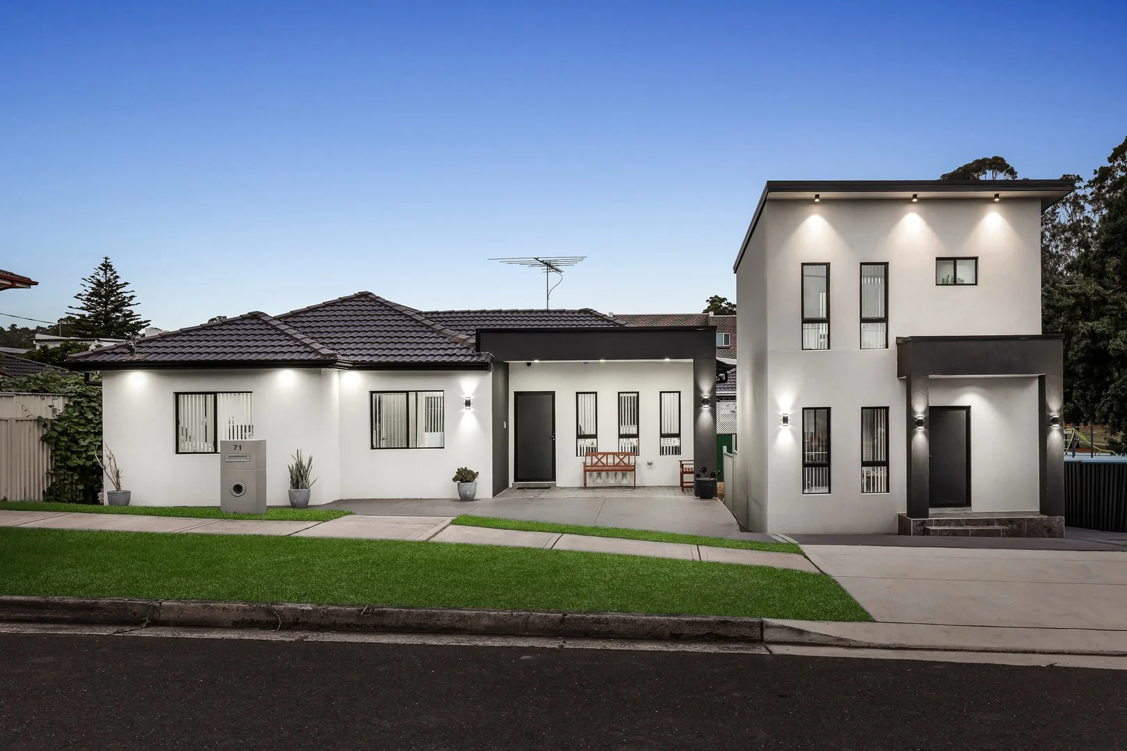 Description: In-Room auction | Doltone House Marconi 1st April | Registration 5:15pm Why You'll Love It: Positioned in a quiet and convenient Woodpark location, 71 Sandra Street sits proudly on a generous parcel with an impressive 23m frontage, offering outstanding street presence, flexibility, and future duplex potential (STCA). This unique property features a beautifully appointed three-bedroom main residence alongside a street-facing, double-storey granny flat-perfectly designed for multi-generational living or strong rental returns. The main home showcases light-filled interiors, enhanced by a kitchen skylight that brightens the heart of the home. Equipped with a 900mm wide cooktop and oven, ample cabinetry including dedicated linen storage, and a functional open-plan layout, the residence blends modern style with everyday practicality. Adding exceptional value is the double-storey granny flat with its own independent street presence. Thoughtfully designed with separate access and a skylight to the living area, it offers privacy, comfort and complete self-containment. Main Residence (3 Bedrooms) - Three spacious bedrooms, all with built-in wardrobes - Dedicated home office/study with built-in cabinet and table - Modern kitchen with skylight and 900mm cooktop and oven - Open lounge and dining area with seamless flow - One full bathroom featuring double shower heads - Separate powder room for added convenience - Linen cabinetry providing excellent internal storage - Ducted air conditioning throughout - Alarm system with four hard-wired security cameras - Smart camera doorbell for enhanced security Double-Storey Street-Facing Granny Flat (2 Bedrooms) - Two well-sized bedrooms with built-in wardrobes - Skylight enhancing natural light to living space - Open living and dining layout - Functional kitchen - One full bathroom plus separate powder room - Private entry with its own street presence Best Suited For: Large or extended families, investors seeking dual rental income, or buyers wanting a versatile property with strong street presence. Offering security, space and modern inclusions in a sought-after Woodpark setting, this is a rare opportunity to secure two homes on one impressive block. Disclaimer: The above information has been gathered from sources that we believe are reliable. However, we cannot guarantee the accuracy of this information and nor do we accept responsibility for its accuracy. Any interested parties should rely on their own enquiries and judgment to determine the accuracy of this information for their own purposes. Images are for illustrative and design purposes only and do not represent the final product or finishes.