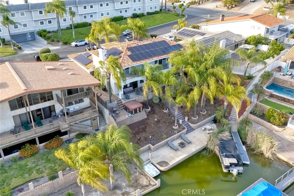 This gorgeous home will be LIVE on 4/17 with open houses 4/18 & 4/19 Located in the guard-gated community of Canyon Lake, this beautifully updated 4-bedroom, 3-bathroom home offers exceptional lake living just a few homes off the main lake. The property features a highly sought-after floor plan, including a main-level en-suite bedroom - ideal for guests or multi-generational living. The remodeled kitchen is a standout, showcasing high-end appliances, custom cabinetry, and an expansive quartz island with ample seating, perfect for both everyday living and entertaining. The open-concept design flows seamlessly into the main living areas, filled with natural light and designed to capture the surrounding views. Buyer to assume solar lease. Upstairs, each bedroom offers direct access to a shared balcony, creating a unique indoor-outdoor connection and an inviting retreat for family or guests. Car enthusiasts and those needing extra storage will appreciate the rare 4-car garage configuration, featuring two separate 2-car garages. Situated on the waterfront, this home includes plans for a U-shaped dock that have already been approved by the POA and are ready for construction, offering a fantastic opportunity to customize your lakefront experience. There is room fpr a pool!! Enjoy all the amenities Canyon Lake has to offer, including private lake access, boating, golf, parks, and a true resort-style lifestyle.
