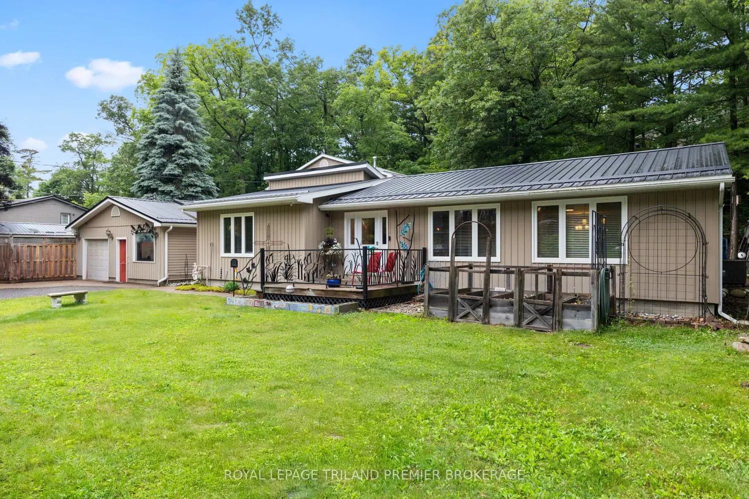 Unique Residential & Commercial Opportunity in desirable Port Franks! Welcome to this beautifully maintained and updated bungalow nestled in the charming lakeside community of Port Franks. Situated on a quiet treed lot, this property offers incredible potential for homeowners, investors, business owners or a combination to suit any buyer. The spacious main home features a bright and airy open-concept layout boasting a large kitchen loaded with storage, stainless steel appliances and wrap around island with two- tier breakfast bar; 2 bedrooms and 2 full bathrooms including primary suite with walk in closet and spa-like ensuite; living room with laminate flooring; dinette with direct access to the backyard; main floor laundry; and office space with built-in shelving. Enjoy your morning coffee and the sounds of nature in the private treed backyard or on the generous front deck. A large detached garage/workshop has 200amp service, 2-piece bathroom, and sink with counter and shelving providing ample space for hobbies, storage, parking or entrepreneurial use. At the rear of the property, you'll find a two-storey dwelling with two self-contained, and fully furnished apartment units with shared laundry hook-up, including main floor one bedroom unit and upper unit with two bedrooms plus den, kitchen with dishwasher hook-up, along with private deck - ideal for rental income or visits with extended family. Whether you're looking for a peaceful home base, an income-generating property, or a unique business opportunity, this one-of-a-kind property offers endless possibilities in a sought-after location near beaches, trails, and amenities. Dwellings are all well insulated, 2 operate. septic (apartment & shop share one). Updates include: Furnace and A/C 12 yrs, metal roof 10yrs, shop metal roof 6 yrs, windows and exterior doors 13 yrs, kitchen 13 yrs, main bath 12 yrs, ensuite 7yrs, extension on rear of home 13 yrs, soffit and fascia 13 yrs, gazebo 3yrs (all ages are approximate).