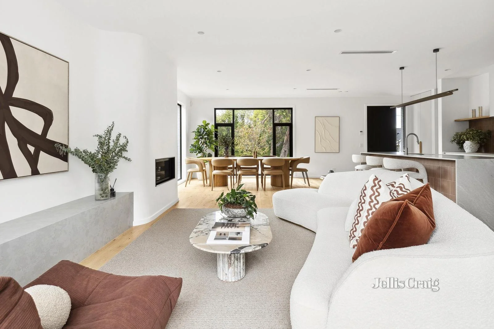 Description: Architectural flourishes have created this distinct and stylish prestige home nestled in the desirable leafy avenues of Newtown. Standing tall on a corner site, this impressive two-storey residence makes a bold statement in contemporary colours, materials and design. First-floor windows are set into architectural steel shrouds and a painted extruded brick portico beckons the visitor. Open the door to an expansive, light-filled living/dining/kitchen space and discover a home with a thoughtful, fluid design equipped with every modern convenience. High-end touches include a cosy gas fireplace set into a round-edged faux chimney, long stone hearth, oak floors, tall ceilings and double doors to an inviting private deck which adds even more space to indoor-outdoor entertaining. The spacious kitchen features stone benchtops and splashback, premium 900mm Bosche induction cooktop, oven and dishwasher with adjoining butler's pantry. Nearby is the luxurious master suite with windows to a private side garden, a wall of built-in robes and nest of drawers cleverly set into the wall. The bright ensuite features floor to ceiling tiles. Timber stairs lead to a second cosy living space, three bedrooms with mirror-faced BIRs, a large study nook and a floor-to-ceiling tiled family bathroom with free-standing bath. The property features a 3KW PV solar system, reverse cycle ducted heating/cooling, alarm system, two extra powder rooms and a double lock-up garage. This beautiful modern home sits at the foot of Newtown hill, which means it's an easy flat walk to and from primary schools and Pakington Street's river-end village of fashion, food and more. The Barwon River, Kardinia Park and prestige secondary schools are also a short walk placing this centrally-located, brand-new home at the doorstep of the best of Geelong. DISCLAIMER: Please note that all information provided by Jellis Craig is in good faith and derived from sources believed to be accurate and current at the date of publication. Jellis Craig acts as a conduit for this information and advises prospective purchasers to conduct their own inquiries. Jellis Craig will not be liable for any loss resulting from actions or decisions made in reliance on the provided information.