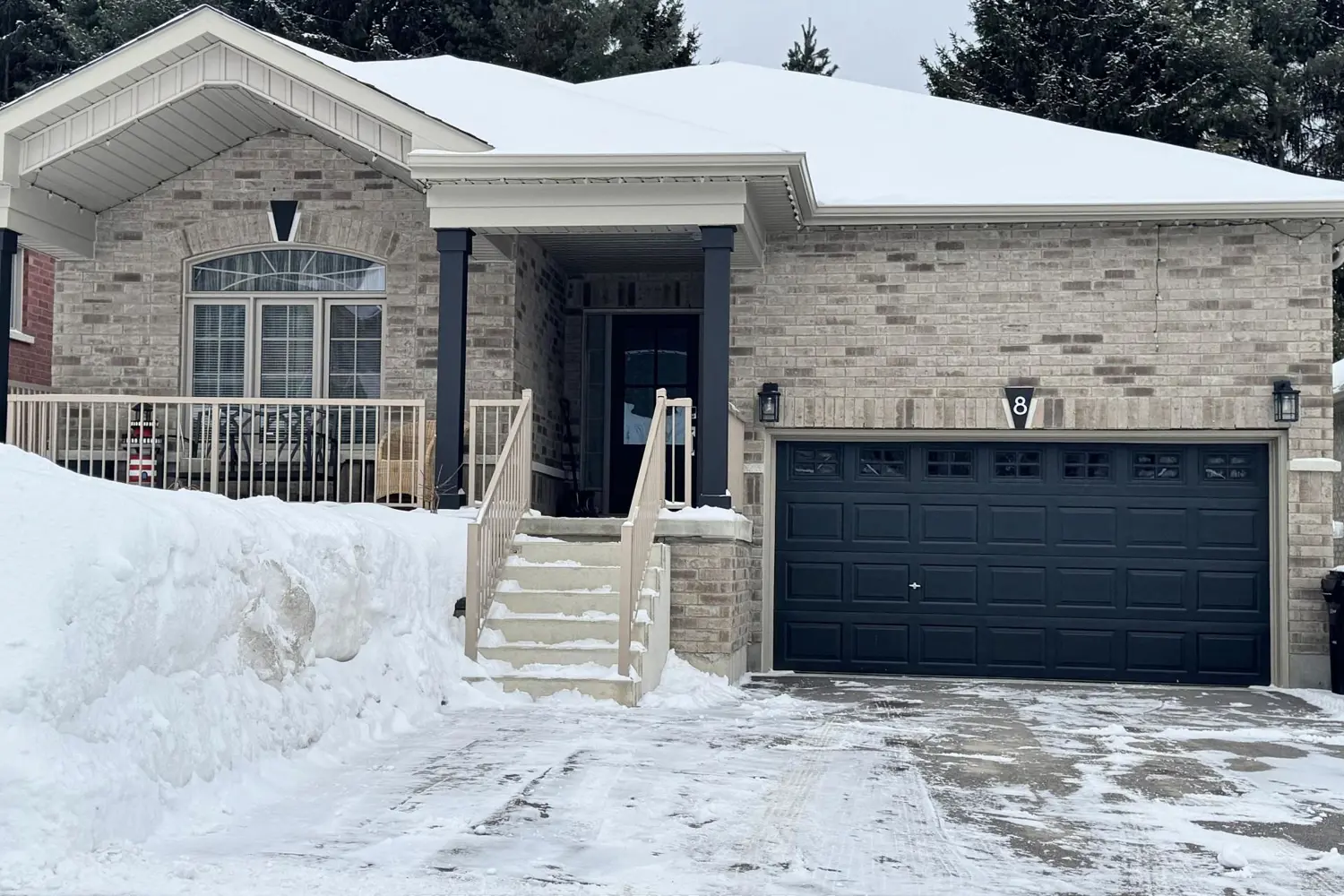 Welcome to the highly desired location of 8 Revol Road! This all brick 1510 Sq ft bungalow, backing on the school (featuring a tree lined fence line), 3 beds, 2 - 4pc baths, a bright open concept eat-in kitchen & a Great room with vaulted ceilings over the living room, making this an excellent space for entertaining. The large Primary bedroom has a large walk-in closet and a large ensuite bathroom with a separate walk-in shower & free standing soaker tub. Also on the main level, you will find easy access to main floor laundry. This family-friendly neighbor hood is close to Schools, Amenities, Georgian Bay General Hospital, near by attractions, Several Marinas (located in Penetanguishene & Midland) Discovery Harbour/Kings Wharf Theatre, Many beaches (Balm Beach, Lafontaine Provincial Park, Awenda Provincial Park, Rotary Champlain Wendat Park, Belle Eau Claire Beach, plus many more) The Simcoe County Forest Nature Trails are located at the end of this street, and a 3 min drive to beautiful Georgian Bay. Purchasers Upgrades: Smooth Ceilings, Cathedral Ceiling in Family/Living room, Rear wall Chimney (for future main floor or basement Gas Fireplace Venting or both), upgraded Island in Kitchen (can be moved approx 1 foot towards kitchen sink should you desire), 200AMP electrical panel, Main Floor Casement windows, Relocated Basement bath RI, Upgraded door & floor trim, Light over sink on separate switch, Light over Kitchen Island & tub in Master bath, A/C, Upgraded flooring throughout, Hot water on Demand (owned), Landscaping Front and Back (Unistone retaining wall & Walk way in Front), Paved Driveway & Rear Yard Fencing.