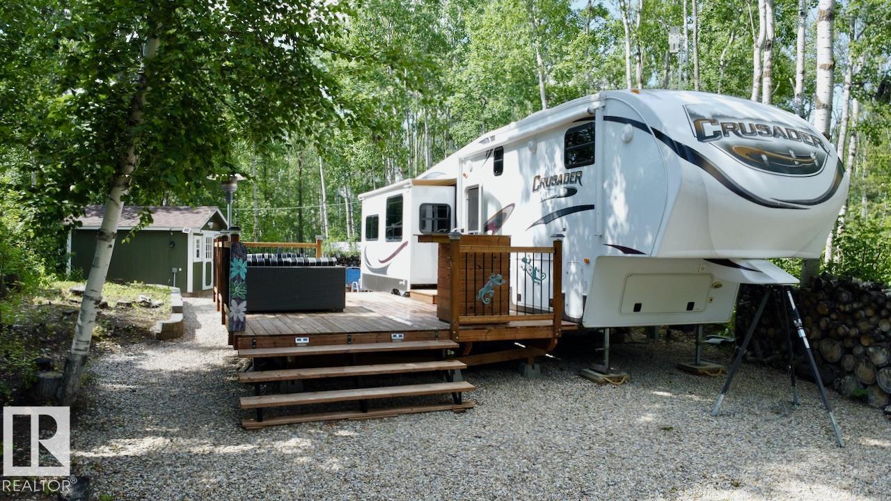 Welcome to #89 Sunset Shores, your turnkey escape in a secure, gated lakeside community. This immaculate 2012 Crusader fifth wheel offers spacious, comfortable living, perfectly set up for relaxing getaways. Step out onto your deck to soak up the sun or gather around the firepit for peaceful evenings under the stars. Need room for guests? The cozy cedar-wrapped bunkhouse has you covered. Sunset Shores is more than just a lot—it’s a lifestyle. Enjoy full access to a stunning clubhouse featuring a banquet area, gym, movie theatre, and more. Spend warm days in the outdoor heated pool or enjoy a friendly game of pickleball, volleyball or basketball. With private boat docking on Isle Lake, adventure and relaxation are always at your doorstep! With full pavement and less than an hours drive from the city, this is the perfect place to go and unwind from life's demands! (34054249)