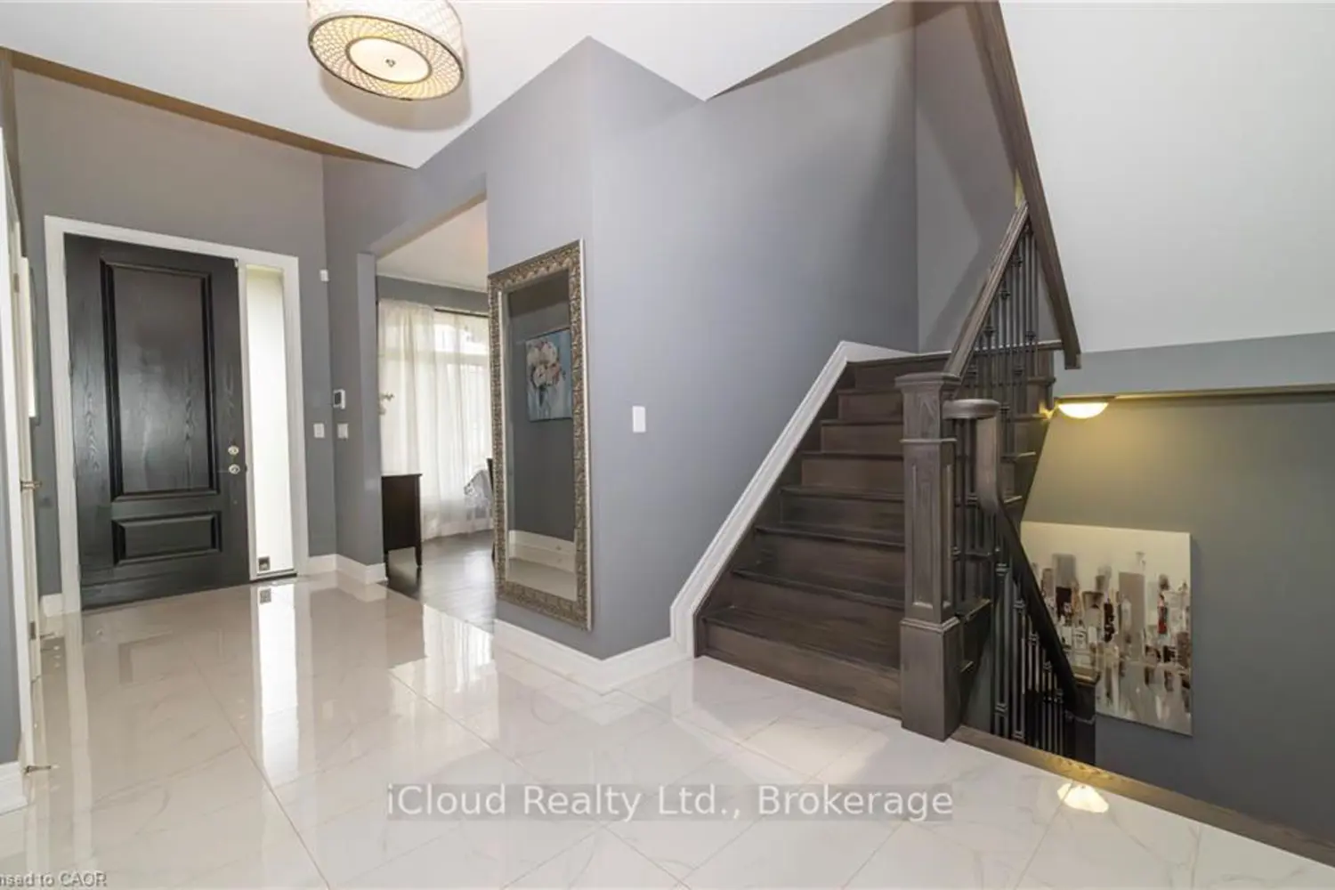 Welcome to this executive 4-bedroom, 4-bathroom detached 2-storey home, built in 2016 and located in the prestigious Fernwood Estates subdivision in Niagara Falls. Step inside to find rich, dark hardwood flooring throughout both the main and second floors, with no broadloom anywhere in the home. Nine-foot smooth ceilings and pot lights on the main level create a bright, upscale feel, while the impressive open-to-above foyer sets the tone for the rest of the home. The gourmet kitchen is a chef's dream, featuring granite countertops, a stylish backsplash, a breakfast bar, and stainless steel appliances. Porcelain tiles highlight the foyer and spacious laundry room, which also provides a walkout to the double-car garage. Upstairs, the large primary suite offers a luxurious 5-piece ensuite bath and a walk-in closet. Three additional well-sized bedrooms share a third 4-piece bathroom. The finished lower level, accessible via a separate walk-up through the garage, offers vinyl flooring, a large recreation/family room, a potential fifth bedroom, a full 3-piece bathroom, and a cold room for extra storage. The exterior is equally impressive, featuring a stone and stucco finish, an exposed aggregate driveway with parking for four vehicles, and a covered concrete patio ideal for outdoor entertaining. Built with style and functionality in mind, this 2016 home combines elegance, comfort, and premium finishes throughout.