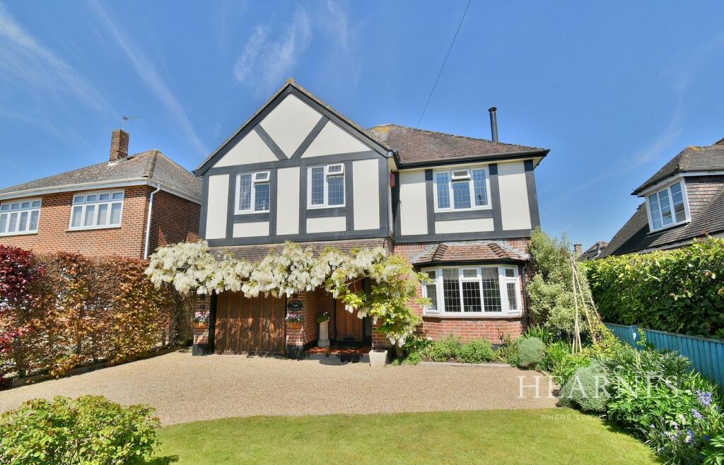 Full Description: <p>An immaculately presented charming and character four bedroom, one shower room, one bathroom detached family home, with a double glazed conservatory overlooking a secluded rear garden with a converted garage and driveway providing generous off-road parking.</p><p></p><p>Austen Lodge has been well maintained over the years, as well as being able to retain many of its original features along with its charm and character.</p><p></p><p>• A four bedroom detached and character family home with a secluded garden</p><p>Ground floor</p><p>• Covered front entrance vestibule with a wooden front door and stained glass window leading through into the entrance hall</p><p>• Spacious entrance hall</p><p>• Ground floor cloakroom finished in modern white suite incorporating a WC, pedestal wash hand basin, fully tiled walls and flooring</p><p>• Light and spacious lounge with double glazed bay window to the front aspect, an attractive focal point of the room is an exposed brick feature fireplace with inset for burning stove and wooden mantle above</p><p>• 29ft open plan kitchen/breakfast/dining area. Kitchen breakfast area incorporates ample roll top work surfaces with a good range of base and wall units, range cooker with extractor canopy above, recess and plumbing for washing machine and dishwasher, recess for microwave, integrated fridge, integrated freezer, the work tops continue round to form a breakfast bar, double glazed window overlooking the rear garden, double glazed door leading out onto the patio area, tiled floor continuing through into the dining area</p><p>• Dining area has ample space for a large dining table and chairs and a feature fireplace with sliding patio doors leading out into the conservatory</p><p>• The conservatory is fully double glazed, has a tiled floor with double glazed French doors leading out onto the patio area</p><p>• Office/study was formerly the rear portion of the garage, has a double glazed window, an internal door leading through into the entrance hall and further door leading through into the front portion of the garage which now is mainly used for storage</p><p>First floor</p><p>• Spacious first floor landing which is large enough to use as a study area</p><p>• Bedroom one is a generous sized double bedroom benefitting from a storage cupboard and two fitted floor to ceiling mirror fronted wardrobes with sliding doors</p><p>• Extremely spacious and beautifully finished ensuite shower room incorporating a large walk-in shower area with a chrome rain drop showerhead and shower attachment, wash hand basin with vanity storage beneath, additional vanity unit, WC, fully tiled walls and flooring</p><p>• Bedroom two is also a generous sized double bedroom with vanity unit, pedestal wash hand basin and double glazed window to the rear aspect</p><p>• Bedroom three is a double bedroom with fitted wardrobes, cupboards and shelving with double glazed window to the front aspect</p><p>• Bedroom four is a generous sized single bedroom with a double glazed window to the rear aspect</p><p>• Spacious family bathroom, incorporating a panelled bath, mixer taps and shower hose, corner shower cubicle, WC, wash hand basin with vanity storage beneath, tiled floor and partly tiled walls</p><p>• Further benefits include double glazing and a gas fired heating system</p><p></p><p>Outside</p><p></p><p>• The rear garden offers an excellent degree of seclusion, is immaculately kept and measures approximately 40ft x 35ft. Adjoining the rear of the property there is an innately shaped paved patio. A side path leads down to a side gate. Along the side path is a log store. The remainder of the garden is predominately laid to lawn and is bordered by well stocked flower beds. At the end of the garden there are two further raised paved patio areas. There is a timber storage shed and greenhouse. The garden is stocked with many attractive ornamental plants and shrubs and is fully enclosed</p><p>• The front driveway provides generous off-road parking</p><p>• The former garage has been converted and sub divided to create a front storage area with the up and over door remaining and a rear portion is now a music room/home office</p><p></p><p>There is a small selection of amenities in Kinson less than one mile away. Bournemouth town centre offers an array of shops, restaurants, leisure and recreational facilities and is approximately 5 miles away. Ferndown offers an excellent range of shopping, leisure and recreational facilities. Ferndown’s town centre is located approximately 3 miles away. Bournemouth Airport is also within easy reach, located approximately 3.5 miles away.</p><p></p><p>COUNCIL TAX BAND: E EPC RATING: E</p><p>AGENTS NOTES: The heating system, mains and appliances have not been tested by Hearnes Estate Agents. Any areas, measurements or distances are approximate. The text, photographs and plans are for guidance only and are not necessarily comprehensive. Whilst reasonable endeavours have been made to ensure that the information in our sales particulars are as accurate as possible, this information has been provided for us by the seller and is not guaranteed. Any intending buyer should not rely on the information we have supplied and should satisfy themselves by inspection, searches, enquiries and survey as to the correctness of each statement before making a financial or legal commitment. We have not checked the legal documentation to verify the legal status, including the leased term and ground rent and escalation of ground rent of the property (where applicable). A buyer must not rely upon the information provided until it has been verified by their own solicitors.</p>