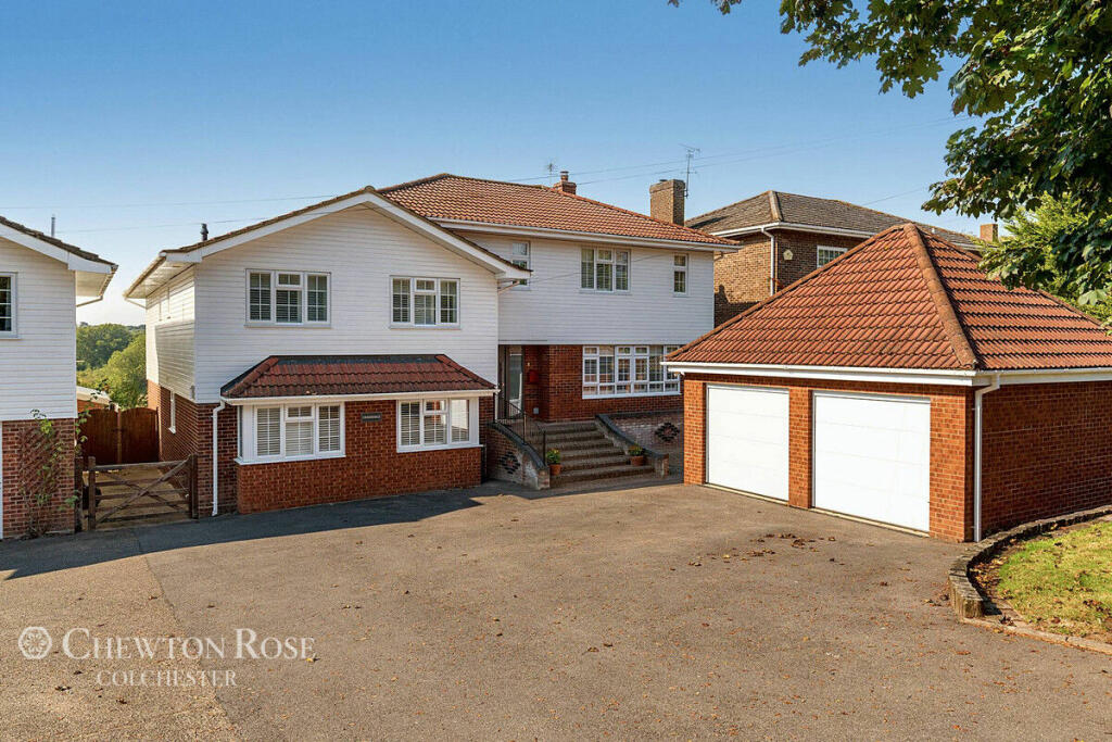 Full Description: Move straight in and enjoy the far reaching views across to the creek.This is a superb and stylish modern six bedroom family home in the outskirts of the village of Thorrington. Only a short drive to the waterside town of Brightlingsea known for its sailing and various watersport activities. An immaculate home, deceptively spacious and with overall accommodation of 3,605 sq. ft. There is also the added benefit of approximately a four acre field (STMS) which is perfect for either leisure or a variety of livestock. Land that would lend itself to horses, alpacas, goats, sheep, to name but a few. Relaxed evenings on the patio with a glass of wine and general chat, enjoying the last of sun and watching the fantastic sunsets is one of the most memorable things our vendors will miss.Split over four levels the main accommodation has six double bedrooms, five bathrooms, including three en-suite. Arguably one of the highlight features of this home is the principle bedroom suite that includes a large walk-in wardrobe, en-suite double shower and incredible west facing roof terrace. There are three reception rooms – sitting room, family / cinema room and study, to the rear of the home an almost 20ft square kitchen/diner and separate utility opening onto a west facing patio/sun terrace. There is also a generous amount of off street parking and a double garage, with useful storage/office space or den above. HISTORYOriginally a fairly impressive 1970s built home, having been in the same family for over 35 years, our current vendors have extended this house into this wonderful modern home that stands today. Initially adding the new double garage and, between 2014–2018 almost doubling the size of the house with meticulous care and attention, eye for detail and style and the use of quality materials. The result being an immaculate family home that is now simply too large for our vendors with children having flown the nest.Note: The threshold of the property is approximately 20m above average sea level and there has never been ANY history of flooding at all that would have any impact on this property or its land.ACCOMMODATION Internal Without doubt, on arriving at the property you are completely unaware of the size of accommodation that beholds. A large bespoke front door by Hormann leads to a light filled hallway with Amtico flooring To the right is a good size sitting room, stylishly decorated to enhance the space and with a central feature open fireplace. Back to the main hall directly ahead is a cloakroom. To the left is the lower ground level with two double bedrooms to the rear, both with patio doors leading out on the sun terrace. There is a shower room to the side and family / cinema room to the front. This room has been used as and can be another bedroom, with ample storage, but currently has a projector and screen, perfect for watching key sporting events or the latest box office hit on Sky or Netflix. Back to ground level and to the rear of the home is the large, almost square, kitchen/diner. A superb spacious room and the hub of the house. Quality and hardwearing Amtico flooring, light and airy, which is enhanced by high gloss low and eye level units and, quartz worktops and island with breakfast bar. This room easily accommodates a 10 seater table and some ‘cozy seating’ to chill out whilst lunch is cooked or relaxing after dinner. Integrated gas hob, cooker and extractor are Miele appliances and space for a large upright fridge/freezer. This room also has air conditioning.The full set of bi-fold doors lead to the raised sandstone terrace and, lower level sun filled patio and rear garden. To the left of the kitchen is a good size utility with plumbing for a washing machine and tumble dryer. Ascending to the first floor to the front is a double bedroom, the second bedroom, with en-suite shower room and walk-in wardrobe. To the side of the landing is a family bathroom and to the rear two double bedrooms with en-suite shower room to the far left bedroom. A final small flight of stairs leads to the study but then onto one of the stunning features of this home, the principle bedroom suite. A cavernous room that swallows a large super king size double bed and side cabinets, crisp and clean en-suite shower room and a very generous walk-in wardrobe. To add to the luxury of this room is the almost 28ft roof terrace overlooking the rear garden and field/four acres of land with far reaching views of Alresford Creek. Simply a stunning bedroom suite. ANNEXE POTENTIALOn the lower ground floor level there is potential for multi-generational living. During the work to complete the extension the rear bedroom to the far left became a kitchen, so with very little effort it would be easy to create a one bedroom annexe perhaps with lounge/diner, bathroom and kitchen, should you not need the additional two bedrooms.ExternalTo the front of the property is a generous driveway that can accommodate six vehicles, and double garage with fully electric remote control Hormann doors. First floor of the garage is a useful storage area, potential office, gym or den or even guest accommodation with some reconfiguration. To the rear is the west facing garden with generous patio area, perfect for entertaining, catching the sun and alfresco dining, and approximately 100ft garden mainly laid to lawn. There is direct access on to the approximate four acre field (STMS)The field does have vehicle access via a gated entrance to the far right via a private lane a short distance before the main front driveway to the house. The field gate is wide enough for tractor and equipment to pass through. Perfect to keep simply as a wild flower meadow and kept as a natural field, potentially to harvest hay, but ideal for anyone looking for land for a variety of livestock including horses, pony, alpacas, goats.There is a 25 year covenant on the field which started approx 2007. The covenant is just for any uplift in value of
