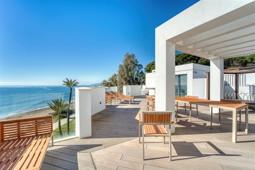 Description: Beachfront 3-Bedroom Townhouse for Sale in The Island, Estepona Located in the exclusive The Island development in Estepona, this stunning 3-bedroom, 3-bathroom townhouse offers a rare opportunity to live directly on the beach with uninterrupted sea views from every bedroom and every window. The property features bright and spacious interiors designed to maximise the natural light and the incredible Mediterranean views. Each bedroom enjoys beautiful sea views, creating a peaceful and luxurious coastal atmosphere throughout the home. One of the bedrooms includes a private ensuite bathroom for added comfort and privacy. A standout feature of the property is the large terrace, perfect for outdoor dining, entertaining, or simply enjoying the sea breeze. Upstairs, the home offers a fantastic rooftop hangout area with a jacuzzi, where you can relax while taking in panoramic views of the coastline and the Mediterranean. Living in The Island means waking up right on the beachfront, with direct access to the sand and sea. At the same time, the property is conveniently located just a short walk from Estepona's charming Old Town, known for its beautiful flower-lined streets, restaurants, and cafes. Puerto Banús, with its luxury marina, shopping, and nightlife, is only about a 20-minute drive away, while Marbella can be reached in around 30 minutes. This exceptional townhouse combines beachfront living, spectacular views, and an unbeatable location on the Costa del Sol.
