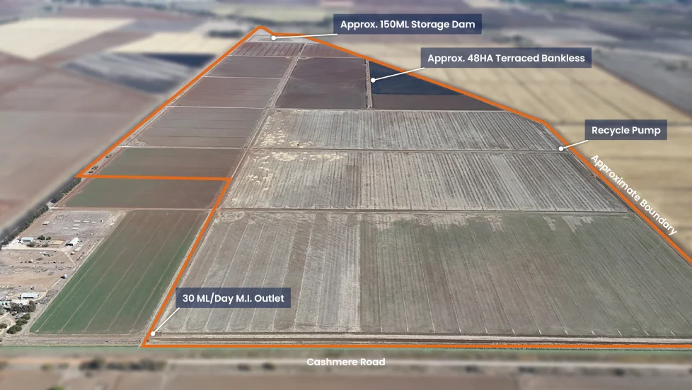 Description: The property boasts consistent fertile brown clays and favourable fall to the west. Incoming purchasers can continue production of rice, cereals and pasture or develop further for intensive high value row crop or permanent plantings. Features Include: - 223.6HA* (552 acres) total area (subject to final subdivision plan). - 48HA* Terraced Bankless (rowcrop) design - 50HA* Constant Grade Bankless design - 110HA* Bordercheck design - 8HA*/150ML* Earthen storage dam with pumping arrangement - Equipped recycle system - 30ML/Day Murrumbidgee Irrigation supply - Boundary and internal fencing - Livestock dams - Fertiliser history - Strategically located, 19km* from Griffith CBD, several grain/oilseed receival points within 30km, Cotton Gins at Whitton (34km*) and Carrathool (100km*) Agent Comments: The property presents as a fertile and productive agricultural investment in its current design. The soil types, shape and favourable topography lend the property to development for irrigated high value annual and permanent cropping systems adopted in the renowned Murrumbidgee Irrigation Area. Prospective purchasers will appreciate the close proximity to both Griffith and produce receival/processing facilities. Realistically priced, this property is deserving of consideration and inspection.