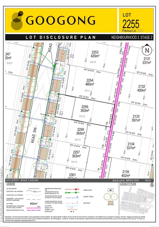 Description: Lot 2255 - This 363m2 block is perfect for a buyer who is looking for an easy block to build on with 12.1m frontage and 30m depth.
