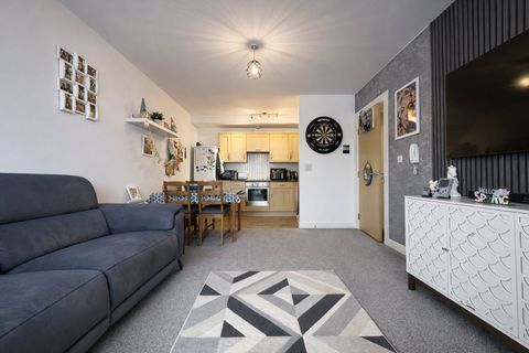 Description: A well-presented two bedroom upper floor flat offered on a 50% shared ownership basis, ideal for first-time buyers seeking a spacious and affordable home.<br>The accommodation is accessed via a welcoming entrance hallway with useful built-in storage cupboards, leading through to a bright and modern open plan kitchen, lounge and dining area, providing an excellent space for both everyday living and entertaining.<br>There are two generous double bedrooms, with fitted wardrobes to bedroom one, and the layout is completed by a contemporary bathroom (details assumed standard where applicable).<br>Externally, the property benefits from one allocated off-street parking space, offering convenience and peace of mind.<br>Material Information (as provided by the current vendor):<br>The property is sold as 50% shared ownership with a monthly rent charge of £184.94, payable to Stonewater.