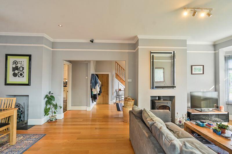 Full Description: Charming elegance and convenience entwine in this handsome detached house, nestled amidst attractive gardens just moments from the town centre.SituationEnjoying a delightful position set back from the London Road on the lower hillside of Hythe, close to the Royal Military canal and Hythe high street with its many restaurants, shops and the unspoilt seafront beyond. Four supermarkets, including well-known names like Waitrose and Sainsbury's, cater to the practical needs of residents, ensuring convenience and choice. Commuting services are excellent, if required, with High Speed rail links to London St Pancras on HS1 in under an hour available from nearby Folkestone West station or Sandling. The Channel Tunnel with Eurostar services is available from Cheriton.PropertyNo 2 London Road presents as a distinguished detached house nestled amidst enchanting gardens, gracefully set back from the road. Having been owned by the current family since 1990, this residence was thoughtfully transformed from two apartments into a captivating space offering ample accommodation for families. Stepping inside, you are welcomed by a generously proportioned reception hall and stairwell, adorned with engineered oak flooring that seamlessly flows through to the open plan living room and dining area. A feature bay window to the front bathes the space in natural light while a charming wood-burning stove adds warmth and character. French doors lead to a serene back garden, and additional patio doors unveil a delightful conservatory boasting underfloor heating and a pitched clear glass ceiling, making it a perfect sanctuary to relax. The kitchen, adorned with matching wall and base units, showcases granite work surfaces, complemented by an alcove housing a Range...OutsideSet back from the road in an elevated position, the property has a wrap around landscaped garden with low retaining ragstone wall capped with timber panel fencing and selection of planting set within timber sleepers.Double gates and a gently sloping sandstone paved pathway leads to the front and side, with timber decking and steps to an impressive enclosed and private rear garden with a combination of close panel fencing, mature trees and planting to boundaries. A raised patio terrace lies to the back of the house and a gently sloping lawn includes further decking and a timber cabin, ideal as a home office, with power and lighting connected, double glazed windows and doors.ServicesWe understand all main services are available.BrochuresProperty BrochureFull Details