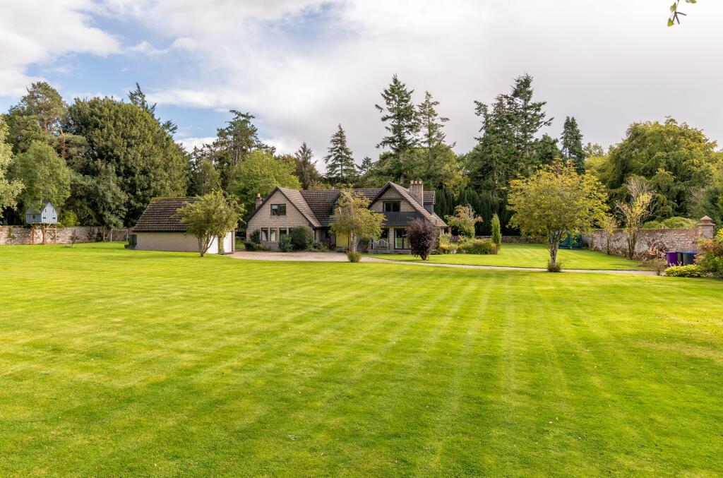 Spectacular detached family home set on approx. 1.5 acres (355sqm), 6 BEDROOMS, 2 EN-SUITES, FAMILY BATHROOM & 2 WC’s, FANTASTIC OPEN PLAN FAMILY DINING KITCHEN + UTILITY ROOM, BRIGHT & SPACIOUS LOUNGE, SITTING ROOM & DINING AREA, DOUBLE GLAZING, OIL CENTRAL HEATING & VARIOUS MULTI-FUEL BURNERS, SUPERB WRAP AROUND GARDEN WITH LARGE DOUBLE DETACHED GARAGE, GENEROUS GATED CHIP STONE DRIVEWAY WITH PARKING FOR SEVERAL CARS, FANTASTIC FAMILY HOME SET IN A SOUGHT-AFTER LOCATION, BEAUTIFUL COUNTRYSIDE & CLOSE TO A90 TO ABERDEEN/DUNDEE, HOME REPORT VALUATION £600,000