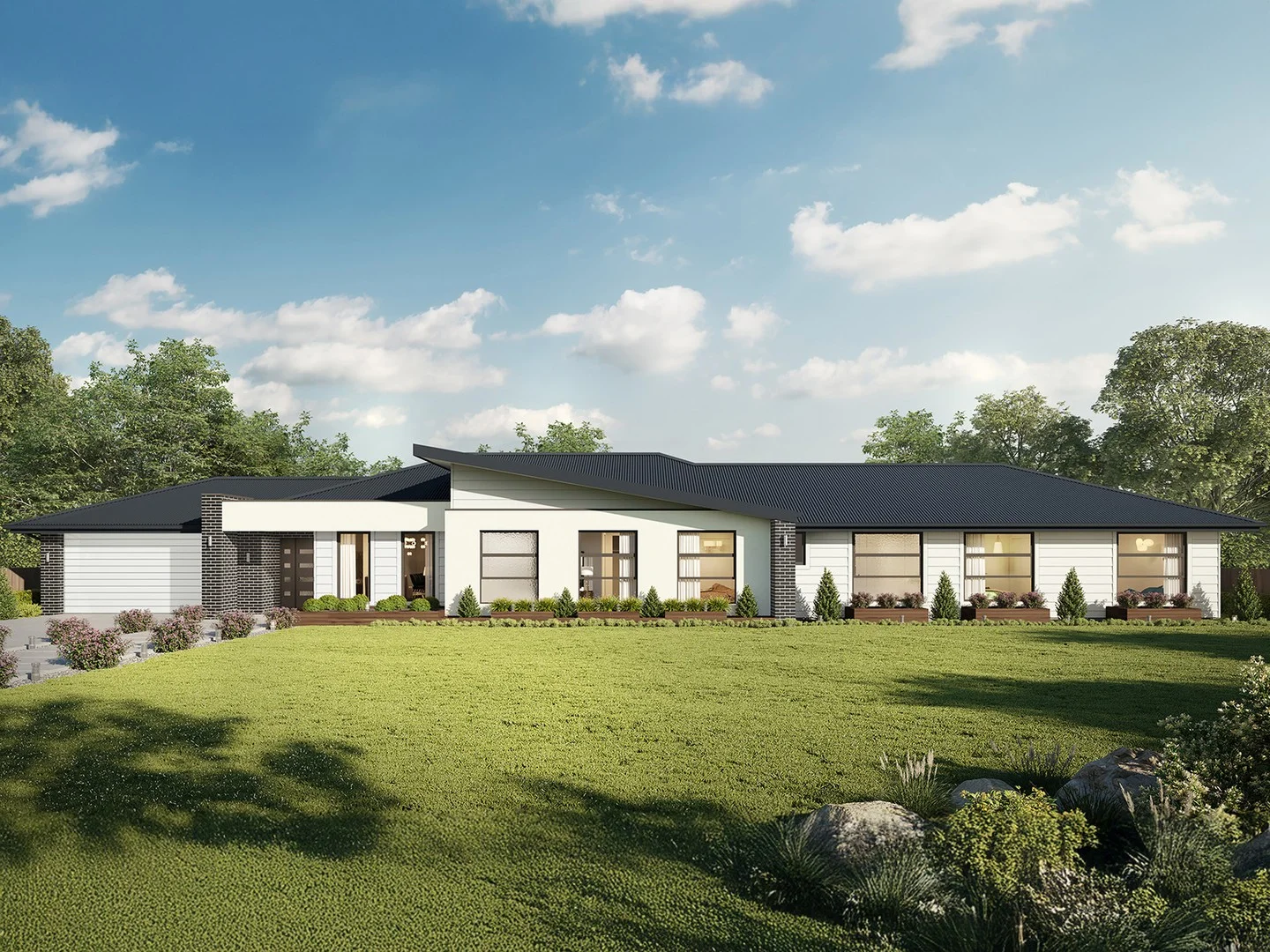 Description: The large master suite is located at the front of the house and is complete with an ensuite and dual walk-in robes. The remaining three bedrooms are located along the side of the home and reduces any noise disturbance for sleeping children. An additional rumpus and semi-enclosed study area can also be found here. The open-plan living space is the hero of this design spreading across the rear of the home and features the kitchen, family and dining areas as well as a large alfresco. With an additional living area and plenty of storage space, this home has it all. It is also available in smaller 273 and 292 sizes. - 20mm Stone Benchtops - 900mm Stainless Steel Appliances - BASIX Sustainability Requirements Allowance - Flyscreens - LED Downlights - Site cost allowance - Vinyl planks, carpet and tiles throughout *Copyright Hotondo Pty Ltd all rights reserved. Dimensions, photos and floor plans are for illustrative purposes and may include optional features. Additional facade options are available, as this home is not yet constructed. All packages are subject to engineering plans and developer's approval and therefore may need to be altered to comply with estate covenants. Should additional costs be required to meet developer approval they will be added to the price, as unavailable at time of advertising. Hotondo reserves the right to expire a promotion, change plans, specifications, materials and suppliers without notice. For further information on this home design visit www.hotondo.com.au ^ Subtract State Government FHO Grant for eligible first home buyers. Builder Licence: 378542C