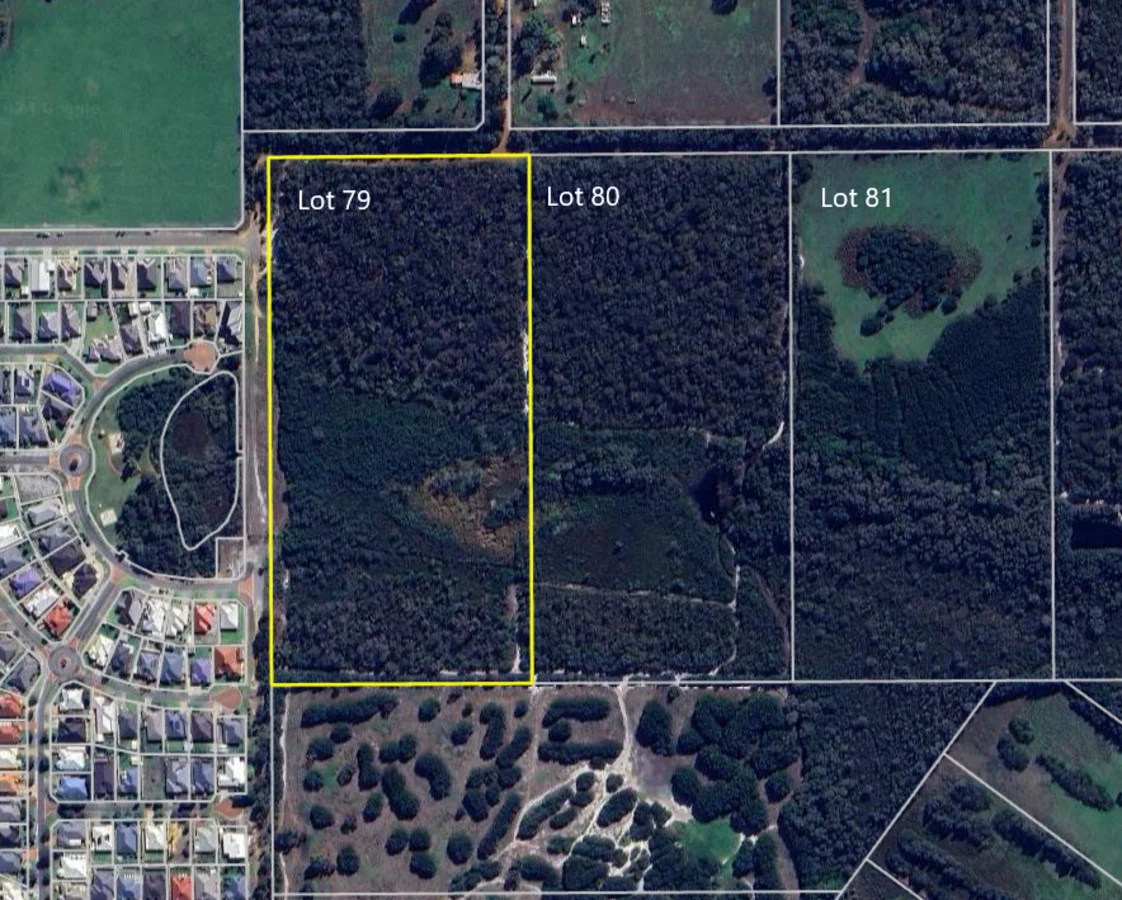 Description: Where else can you get this much land so close to the city centre? Three Picturesque 20 acre blocks selling as one lot. Located next to suburbia, they have amazing outlooks and are gently undulating towards town. Maybe you choose to look into developing now, keep for future development or build your home and enjoy acreage close to town. Either way the old saying "location, location, location" rings true. No longer do you need to move "out of town" to have that space that you have always wanted. Seize the opportunity to invest in the future growth of the area, capitalizing on the increasing demand for urban living spaces. Lot 79 and 80 are native bushland and lot 81 has some pasture and stock yards and is partially fenced. In the Yakamia/Lange structure plan.