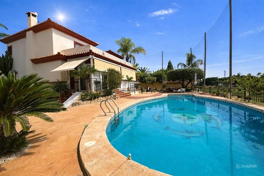 Description: Located in the prestigious Bonalba Golf area, this elegant Mediterranean-style detached villa is set within an exclusive residential complex of only 8 private homes, offering privacy, tranquility, and open views over the golf course. The property sits on a private plot of approximately 810 m², surrounded by a landscaped garden with various fruit and ornamental trees. Outside, a beautiful oval-shaped private swimming pool becomes the perfect place to relax and enjoy the Mediterranean climate all year round, complemented by a sunbathing area, barbecue space, and a covered pergola parking area for two cars. The villa offers approximately 380 m² of built space distributed over three levels, with spacious, bright, and well-designed interiors. Main floor A welcoming entrance hall leads to a large living and dining room with fireplace, filled with natural light and with direct access to a sunny southeast-facing terrace overlooking the garden, pool, and golf course. The kitchen is independent, practical, and spacious, with an adjoining laundry area. This level also includes two double bedrooms, a full bathroom with a large shower, and a guest toilet. First floor Upstairs you will find two additional bedrooms, some with en-suite bathrooms, as well as a home office that can easily be used as an extra bedroom. A lovely 20 m² terrace offers open views and a peaceful place to relax. Basement The fully habitable and well-ventilated basement includes a large lounge or leisure area, an additional bedroom, a pantry, and storage space, making it perfect for hosting family and guests while maintaining privacy. Outdoor areas The plot surrounds the entire house, ensuring excellent privacy. It features: Private swimming pool with sunbathing area Landscaped garden with trees Barbecue area Covered parking for two vehicles Storage areas and wine cellar The property is also equipped with gas central heating, providing comfort throughout the year. Location Bonalba Golf is one of the most desirable residential areas in Mutxamel, known for its peaceful environment and excellent connections. The beaches of El Campello are only a few minutes away by car, along with restaurants, cafés, spa, gym facilities, shops, and the Bonalba Golf Club. ✨ A perfect property for enjoying Mediterranean living, combining comfort, privacy, and beautiful surroundings.[IW]