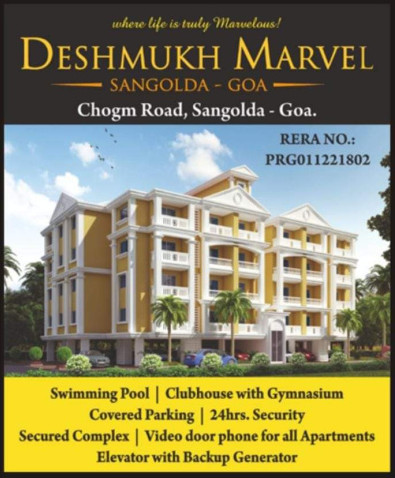 Property Description: with all Modern Eminities Deshmukh Marvel stands Call with all features spacious flats Garden Swimming pool Gym ClubHouse porvorim city very close By market supermarket Restaurants School Colleges close By