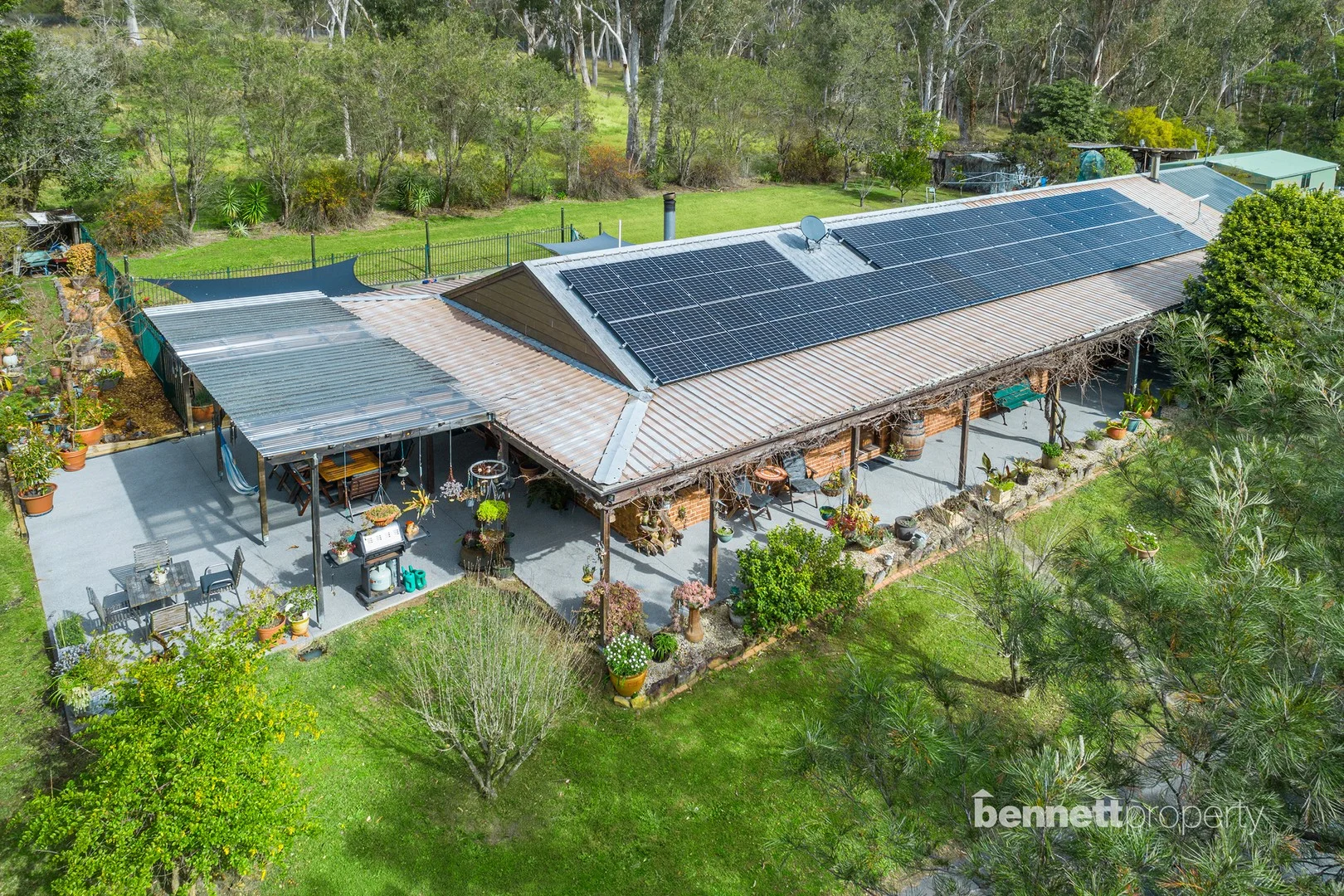 Description: Fantastic homestead suited towards the large family - or perfect for multi-family living. Offering an expansive main residence with four bedrooms and a 1-bedroom self-contained flat under the main roof, plus a separate self-contained studio! Ideal for a teenager's retreat or a large family requiring extra living or dual accommodation. The residence is situated in a tranquil rural setting, away from the main road. The home boasts a lovely north-facing aspect and is perfectly positioned on a gently sloping 4-acre parcel. The acres are mostly arable and would make a great space for horses or livestock, and level enough for a riding arena or round yard. The home provides great functionality and is fitted with approximately 32 solar panels with a 13.3kW system. Has ducted reverse cycle air-conditioning, ceiling fans, slow-combustion fireplaces, downlights, and all complemented by Hybrid timber floors. The kitchen has a fresh appeal, having been updated with lovely country-style cabinetry, a dishwasher, and gas cooking. All bedrooms in the main residence have built-in robes, and the master wing has its own separate walk-in closet with a spacious modern ensuite. The main bathroom is spacious and centrally positioned. The self-contained flat has a bathroom of its own. Outside, you will find a relaxing undercover entertaining space/BBQ area overlooking an inviting in-ground swimming pool with shade cloth. There is a large shed with power and a concrete slab. Double carport for car accommodation. If you are looking for an expansive residence in a rural setting with dual accommodation options, 561 Tennyson Road may just be the perfect fit for you! If you would like more information or to arrange an inspection, please do not hesitate to contact our friendly team at Bennett Property!