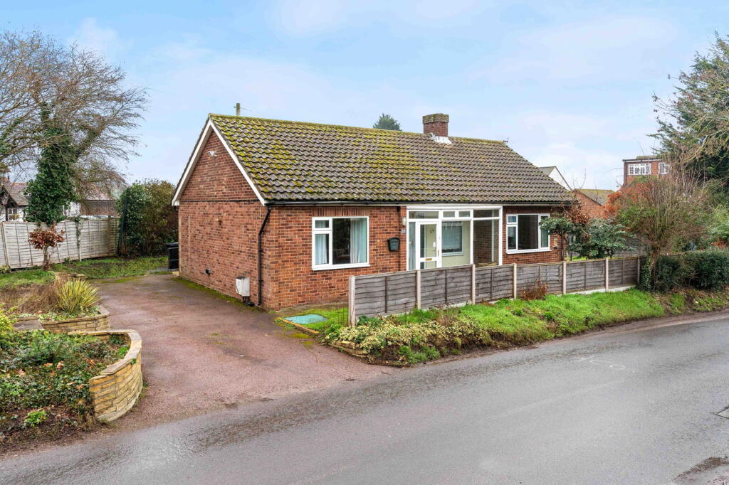 Full Description: This excellent detached bungalow is close to the Upper Green in Tewin and provides well cared for and presented accommodation benefiting from good size rooms, gas central heating, double glazed windows and own driveway with parking for two or three cars. Seldom do bungalows come to the market in the village and this presents a great opportunity for downsizers or those with mobility problems.STEP INSIDEA large double glazed porch provides the ideal entrance with plenty of space for coats and shoes. The front door leads into the entrance hall where one finds two useful built in cloaks/storage cupboards. There is a good size living room with feature fireplace and double glazed windows to three aspects overlooking the garden. The kitchen is in the center of the bungalow and is fitted with a good range of wall and base units with worktop surfaces and integrated fridge. Further appliance space. Wall mounted Vaillant gas fired boiler serving hot water and radiators. A door leads out to the rear garden. The main bedroom is a good size double room and fitted with a good range of wardrobes and double glazed window to the front. The second bedroom is also a double room with double glazed window to the rear. A large modern wet room completes the property and is ideal for those with mobility problems but it is large enough to be refitted with a conventional bathroom suite.STEP OUTSIDEApproached by its own driveway that provides parking for two or three cars. The bungalow is set centrally on its plot with the main garden on one side that is attractively laid to lawn with patio shrubs and flowers borders. The lawn extends to the rear of the bungalow with a ramp/ slope leading up to the back door providing excellent access into the property for those with mobility problems. There is also a small greenhouse and a summerhouse.LOCATIONThe attractive village of Tewin is a highly desirable and sought-after residential area and is arranged around two village greens and nestled between Welwyn Garden City and Hertford. The property is found close to the upper green where cricket and tennis are often played when weather permits. Excellent local amenities including a community-owned village store/cafe/post office, two pubs, an historic parish church and a thriving primary school are enjoyed by residents. The latter has a swimming pool, which is open to families during the summer holidays. The Memorial Hall hosts many community and social activities and other events. Sports are catered for by popular cricket, tennis and bowls clubs. Nearby Tewinbury Farm boasts hotel accommodation, dining and entertainments.The nearest railway station is Welwyn North which provides fast regular services to London King's Cross in just 20/25 minutes. Access to the A1(M) J6 is only 3or 4 miles away. The nearby towns of Welwyn Garden City, Hertford, Stevenage, St Albans and Hatfield also ensure that a wide array of facilities are within easy reach.GENERAL INFORMATIONLocal authority: East Herts DC . EPC Band D. Council Tax Band FAll mains services are connectedAwaiting energy rating