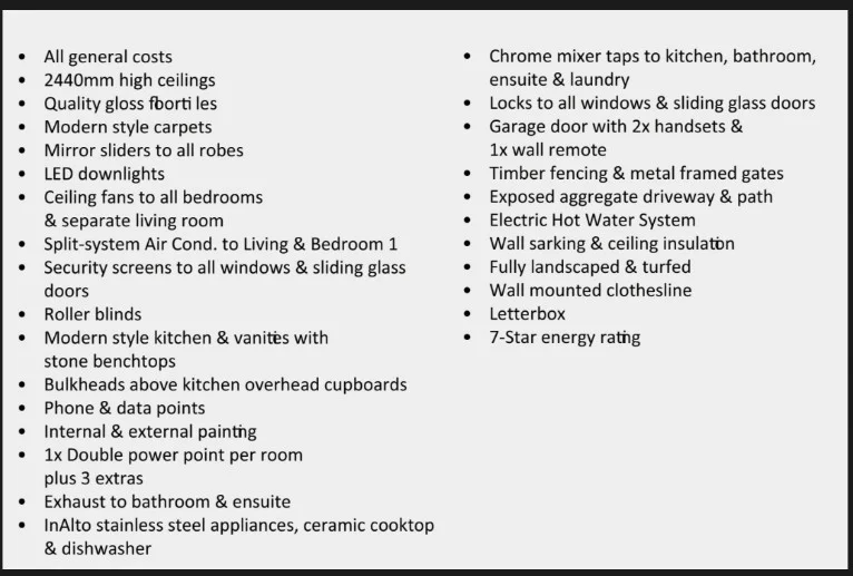 Features and Finishes